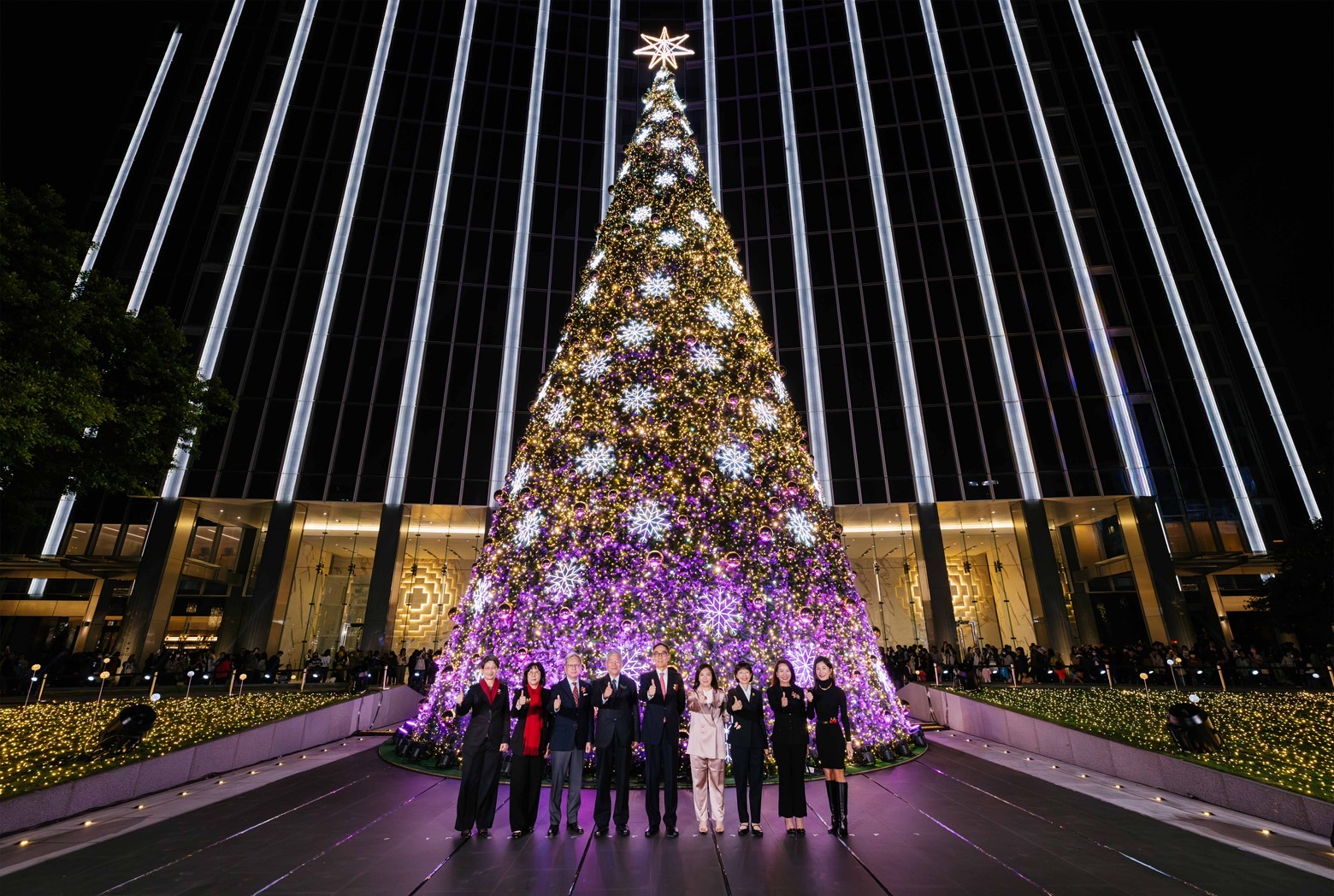 凱基金控昨日晚間在總部廣場舉行年度聖誕點燈活動,全台最高的飄雪聖誕樹亮相,絢麗光影搭配人造雪花自空中飄落,吸引路過民眾駐足觀賞。點燈儀式由凱基金控董事長王銘陽率領集團子公司主管共同啟動,主題為「相映成光、共築成林」,象徵企業與城市、土地之間的連結與支持。同仁並穿戴聖誕風格小物,拍照留念互道祝福,現場瀰漫濃厚聖誕氣氛。