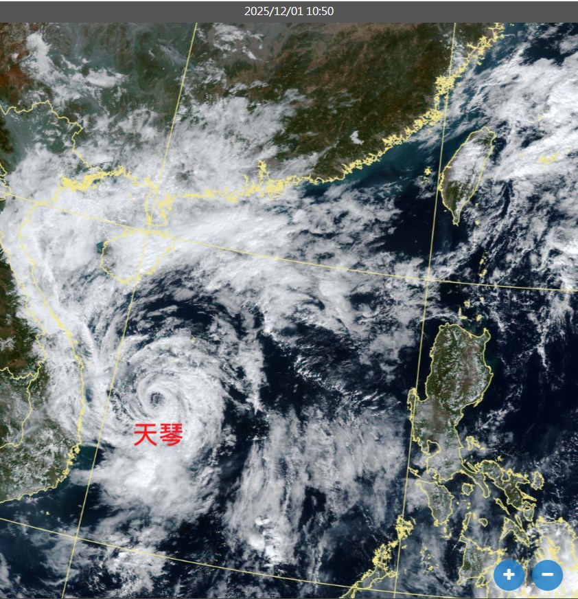 天琴颱風11月25日生成,目前仍是輕度颱風。中央氣象署表示,輕颱天琴上午8時的中心位置在太平島北北西方560公里海面上(鵝鑾鼻西南方1270公里之海面上),向南南西緩慢進行,即將減弱為熱帶性低氣壓。前中央氣象局長鄭明典在臉書表示,天琴颱風並不強,但是很少有颱風在南海生成又在南海旋轉那麼久。