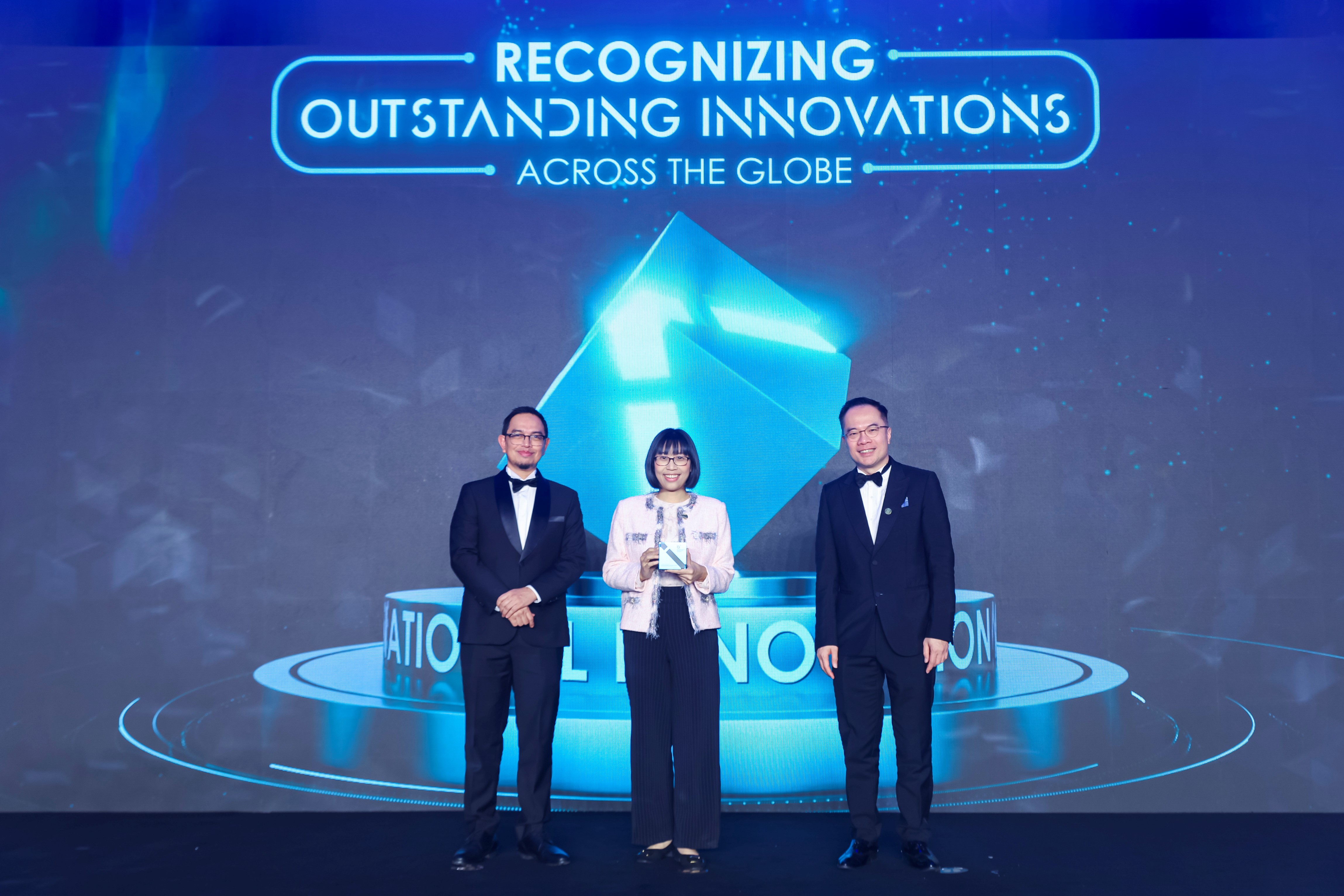 新光人壽榮獲「2025 IIA國際創新獎」,由數位服務發展部協理林永欣(中)代表受獎。新光人壽/提供