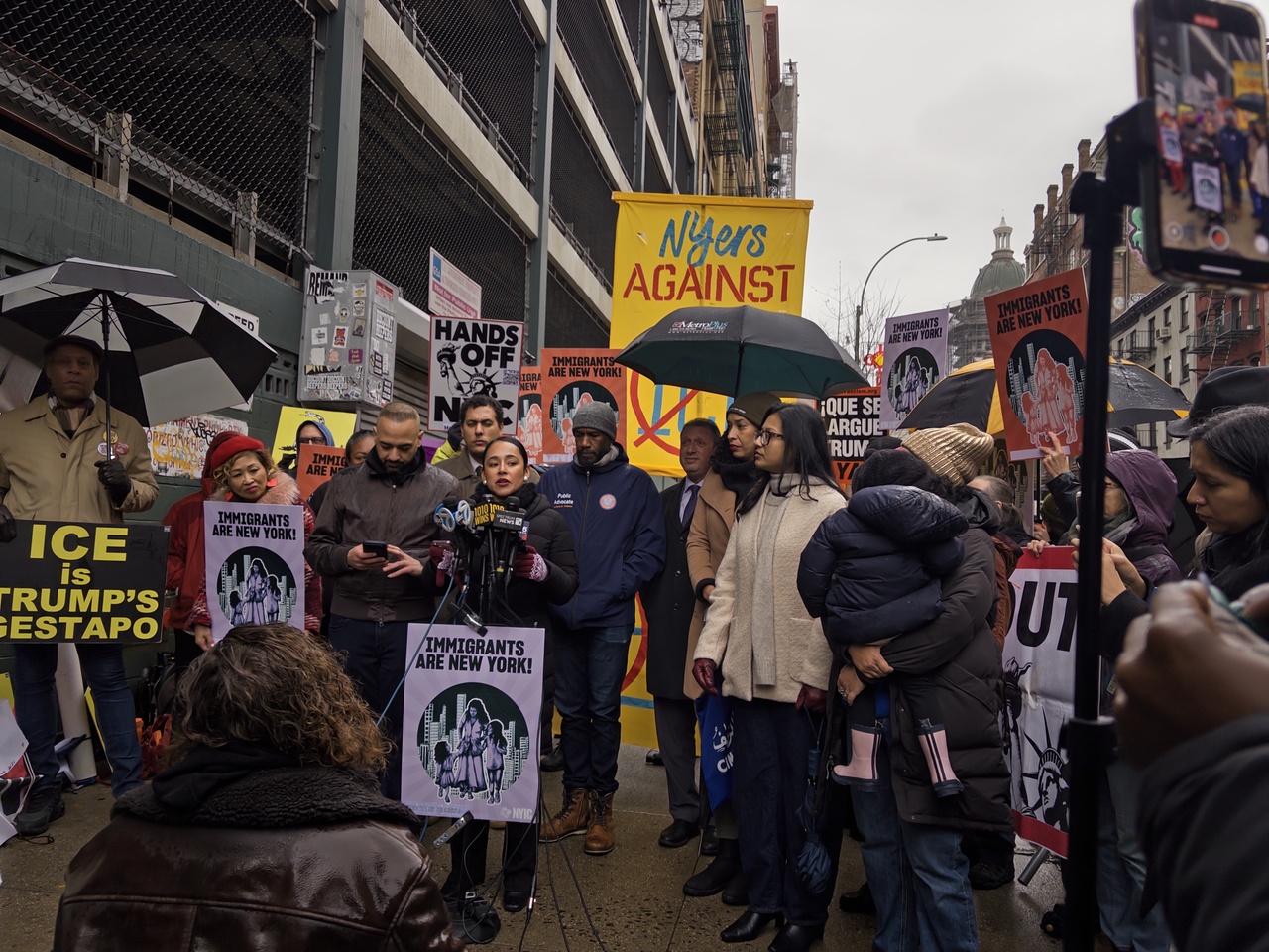 集會現場的移民權益倡導者表示,為了應對不斷蔓延的移民執法,紐約市民已自發組建起彼此支援的安全網,透過在聊天群組報告ICE最新動向、志願於移民法庭輪流站崗等方式守望相助。