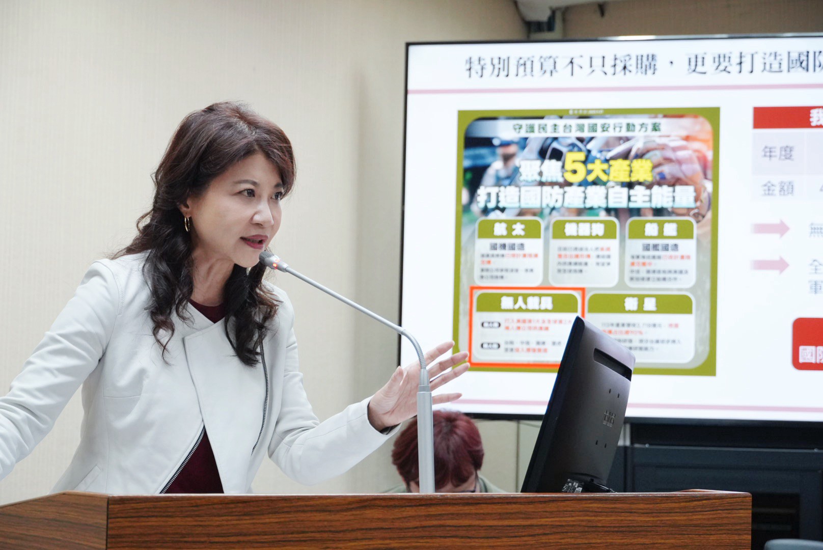 林楚茵強調,國防部應積極與經濟部及相關單位完成跨部會整合,把規定制定出來,讓未來量產與外銷時能真正承接訂單,才能落實9萬個工作機會與4,000億元產能。