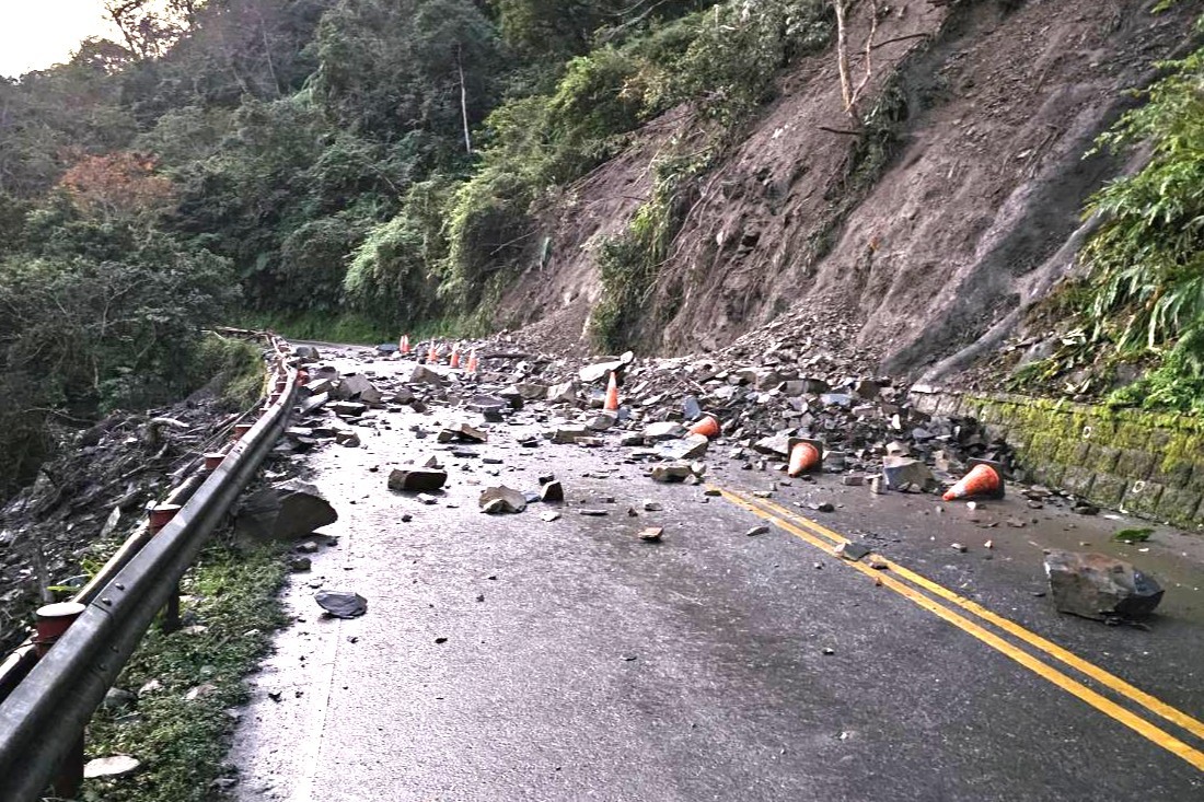 宜蘭分署表示,「宜專一線」8.5公里處上午7時許,發生上邊坡土石崩塌,並持續落石,造成道路雙向受阻,隨即啟動封閉措施,調度人員與機具投入搶修。