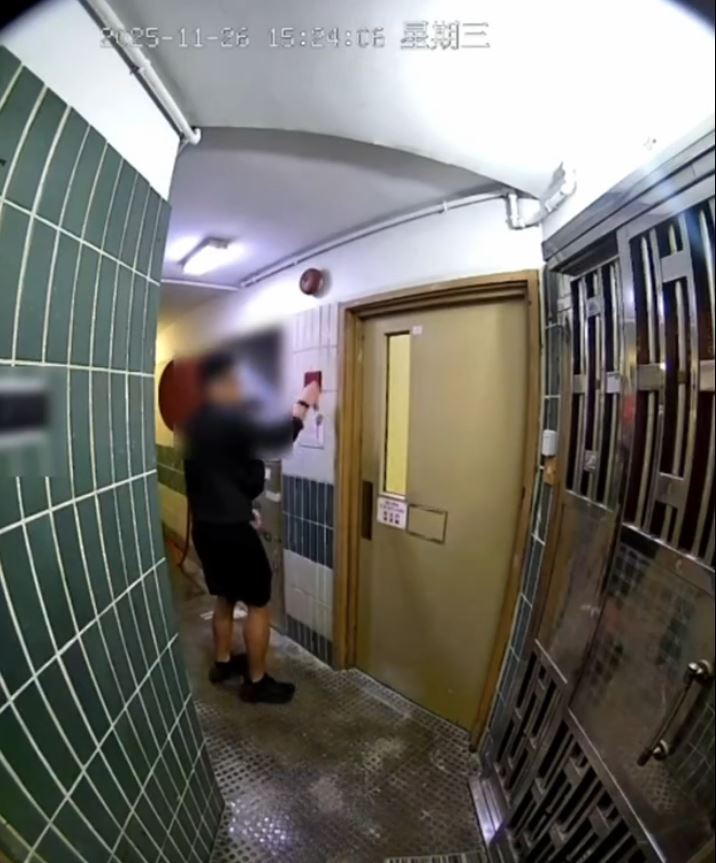 12月1日下午近5點,有網友在Threads上發布影片,聲稱是火災發生時,宏福苑宏建閣內部的監視器影像,並留言,「宏建閣某戶門外CCTV:那個(火警)鐘按不響。」