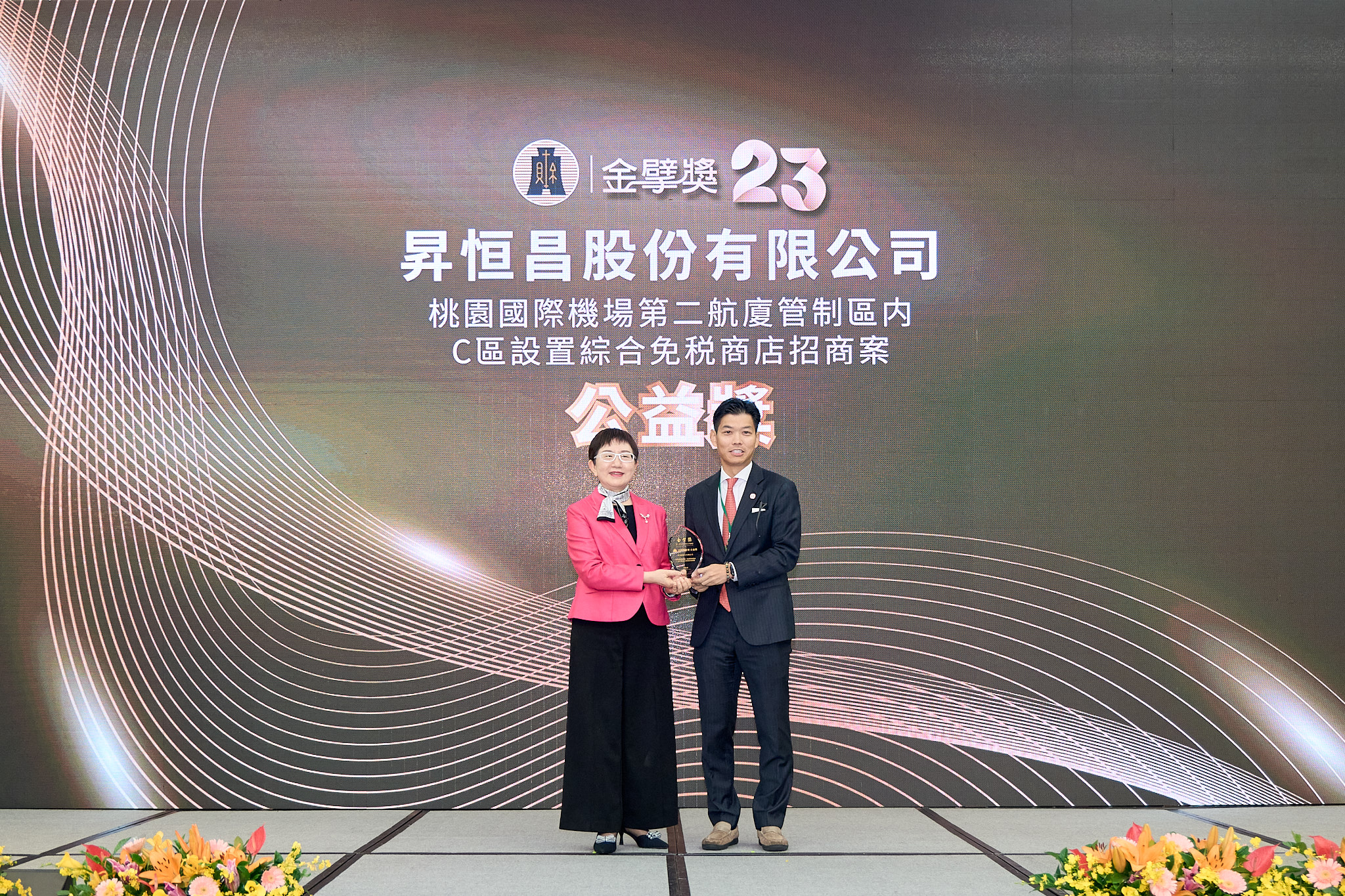 昇恆昌免稅商店完成「桃園國際機場第二航廈管制區內C區設置綜合免稅商店招商案」,提升桃機國門形象、支持地方創生,榮獲由財政部主辦、譽為臺灣促參界奧斯卡獎的「金擘獎」特優,不僅是眾多受獎者中唯一獲得特優的團隊,也是唯一獲得公益獎的企業,更是四度榮獲金擘獎特優肯定,再度展現民間企業參與公共建設典範。