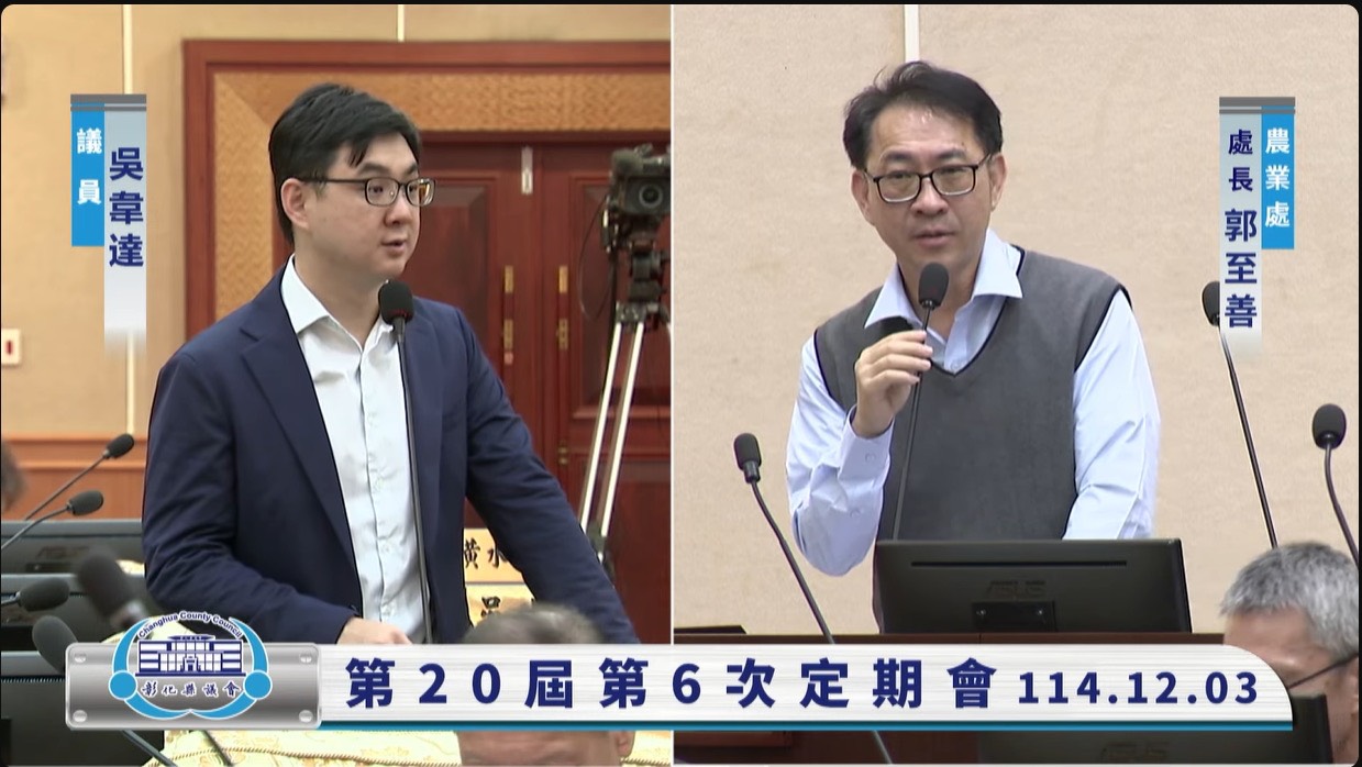 彰化縣議員吳韋達今在彰化縣議會二三讀會,針對「彰化動物收容所改建」預算提出質詢。圖/吳韋達提供