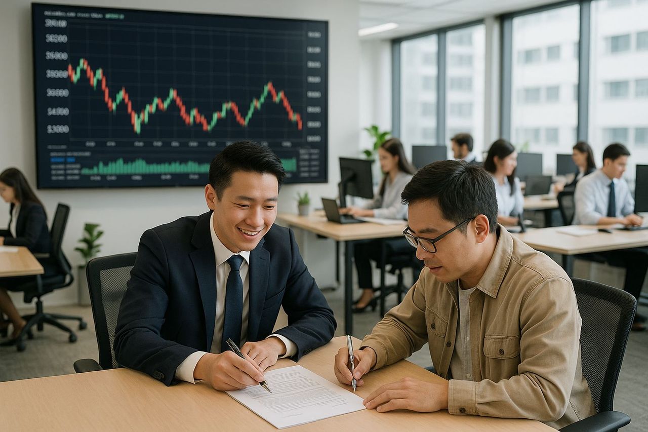 圖為客戶簽約買理財商品示意圖。圖/AI生成