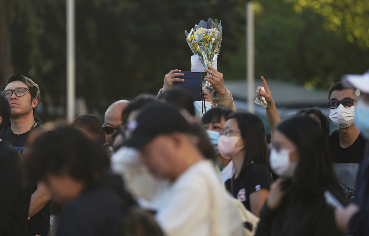 圖為民眾在廣福道休憩處獻花哀悼逝者。香港中通社