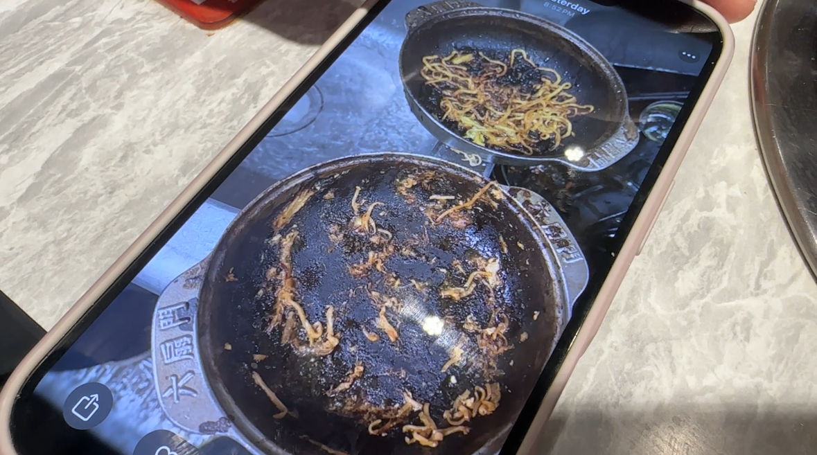 嘉義1間連鎖火鍋店1日晚間,發生高中生惡搞事件,4名學生疑似在鍋內「炒麵玩耍」,任由湯底燒乾冒煙,店員2度提醒關火均遭無視,最終鍋子被燒得焦黑毀損。圖/讀者提供