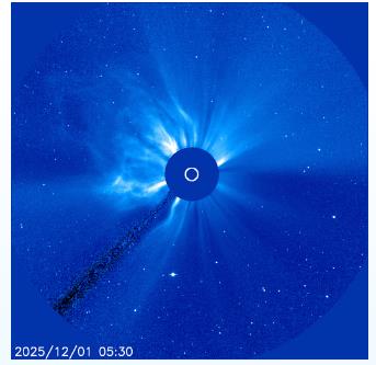 氣象署指出,受日冕洞產生的高速太陽風及太陽表面活躍區(AR4299)於12月1日發生顯著的日冕物質拋射事件,持續影響近地太空環境,造成行星際空間中的太陽風風速及密度明顯增加,依據NOAA WSA-Enlil模式資料分析,於台灣時間12月4日2時起地磁擾動將有明顯增強並持續影響約15小時,最大規模可能短暫達到中度磁暴等級。