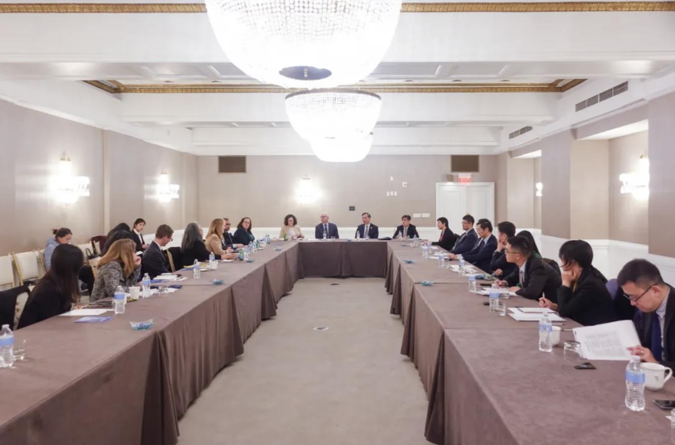 中新社報導,中國貿促會組織中國企業家代表團在華盛頓與美中貿易全國委員會及其會員企業交流座談。大陸貿促會會長任鴻斌、大陸駐美國使館經商處公使呂江、美中貿委會會長譚森(Sean Stein)等出席並致辭。來自科技、金融、能源、醫療等領域的40多家美方企業代表和中國工商銀行、中國國航、泡泡瑪特等大陸企業代表逾80人參加活動。