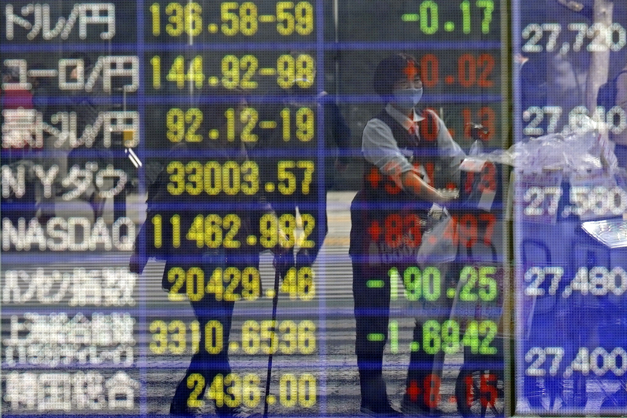 在紐約股市上漲帶動下,東京股市今天收盤大漲超過2%。日股示意圖。美聯社