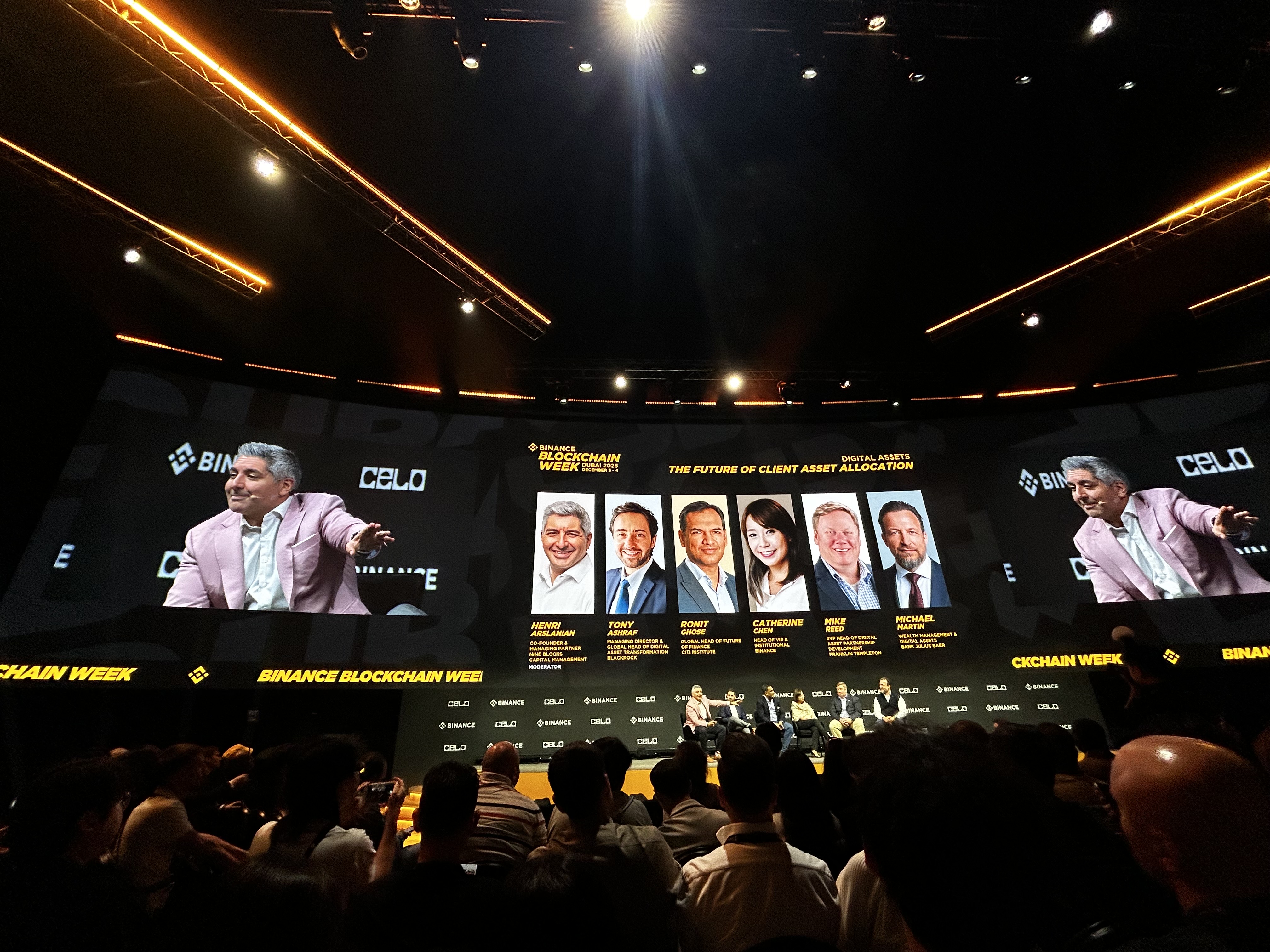 2025幣安區塊鏈週3日於杜拜登場,貝萊德、花旗、富蘭克林坦伯頓、寶盛銀行、Nine Blocks資本管理公司與幣安共同談論機構視角下的數位資產。圖/黃于庭