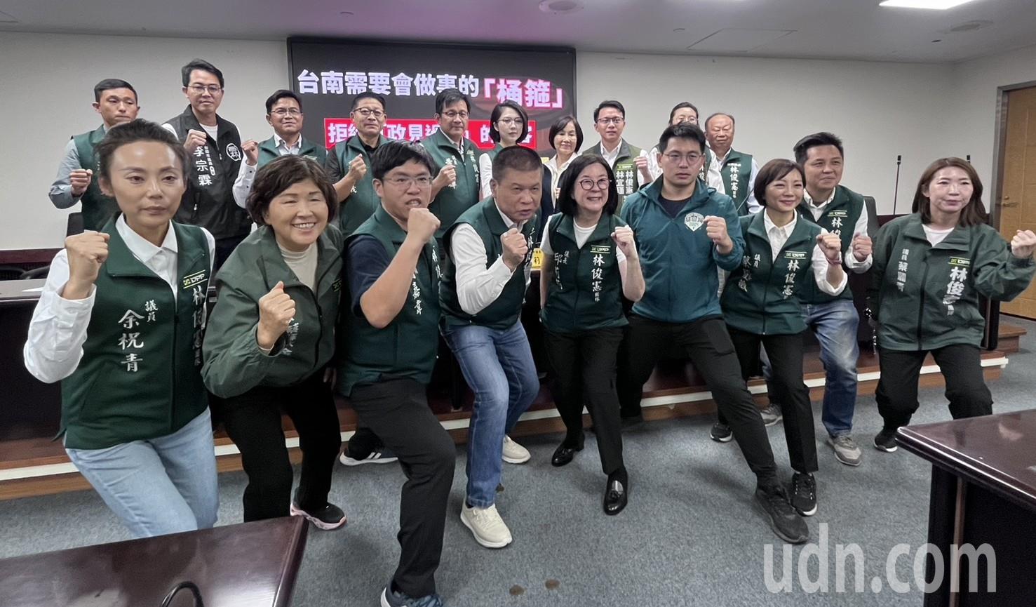 2026年台南市長民進黨初選白熱化,台南市議會議長邱莉莉等20多位民進黨及綠色連線議員今天召開記者會力挺林俊憲,才是台南最需要最信任會做事的「桶箍」。記者吳淑玲/攝影