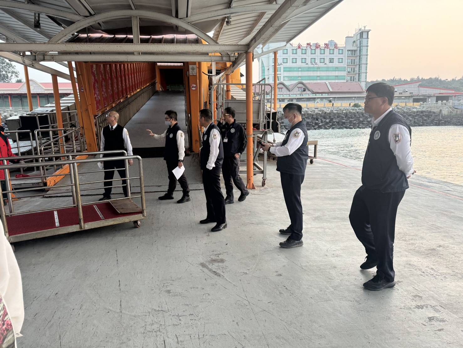 大陸公安昨突然一次將多名涉詐台籍人士遣返金門,讓水頭碼頭現場一度混亂,甚至有民眾直擊大批移民署國境隊人員一字排開到碼頭嚴陣以待,而港警卻遲遲未現身,讓不少人覺得很奇怪。圖/民眾提供