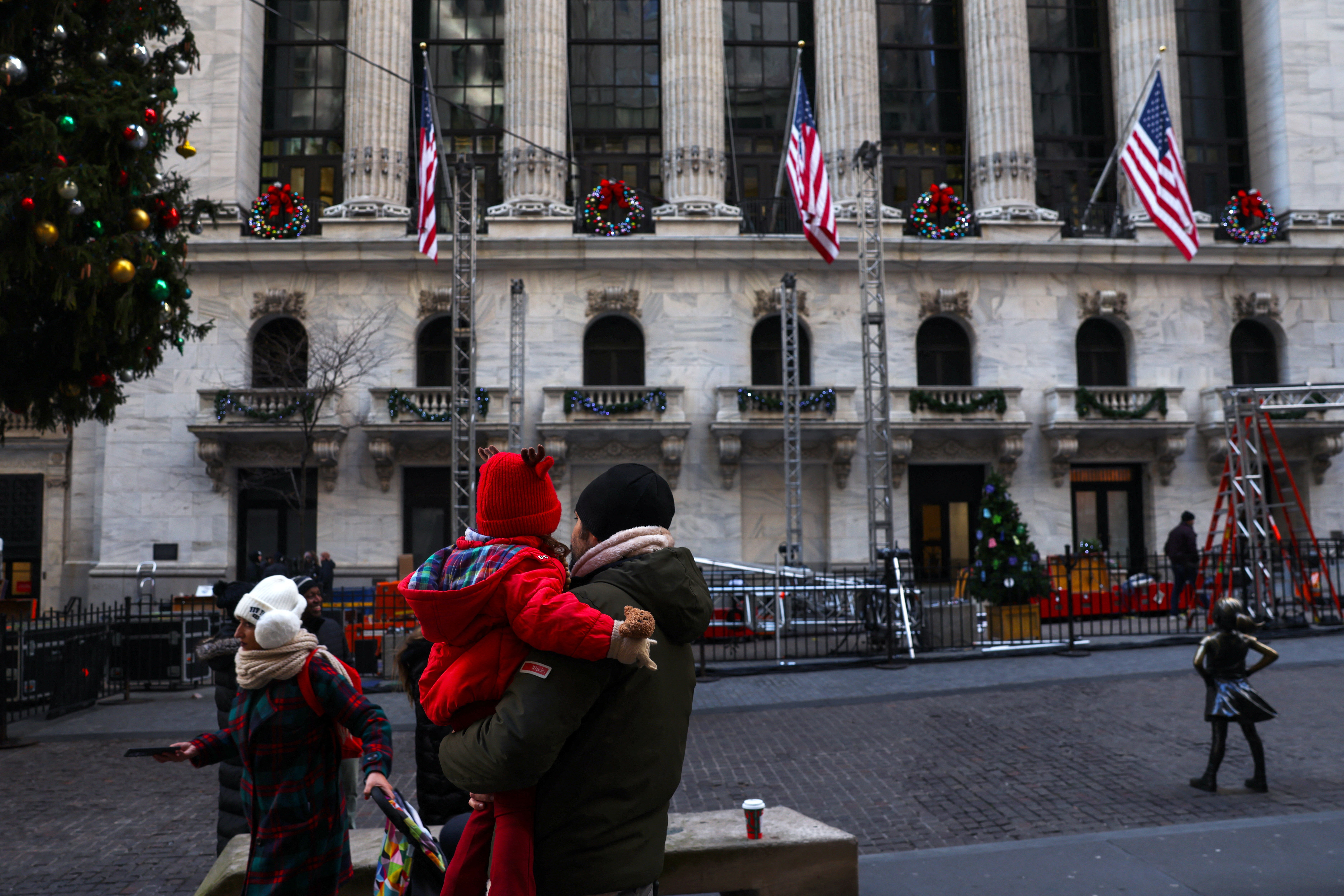 紐約證交所外3日已立起聖誕樹,增添不少年節氣氛。路透