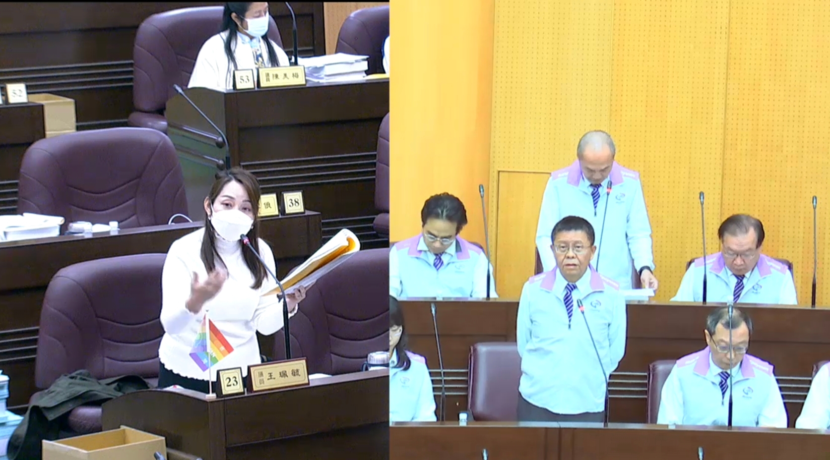 桃園市議會今天聯繫審查市政府預算,圖為議員王珮毓質詢桃捷公司預算用途。圖/議會直播畫面