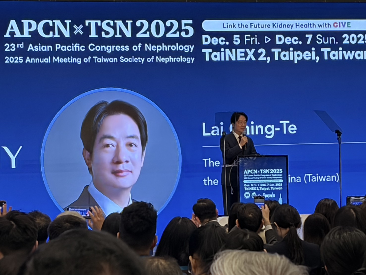 賴清德表示,時隔25年在次舉辦亞太腎臟醫學會議,對我國而言意義重大,腎臟病是國際公共衛生重要挑戰,而國內約累計9萬名確診末期腎臟疾病,需不同形式透析的患者,不僅花費15億美元(約台幣470億)醫療費用,也對國人健康造成重大衝擊,身為一名腎臟科醫師,他深感腎臟健康,為民眾健康與福祉重要支柱之一。