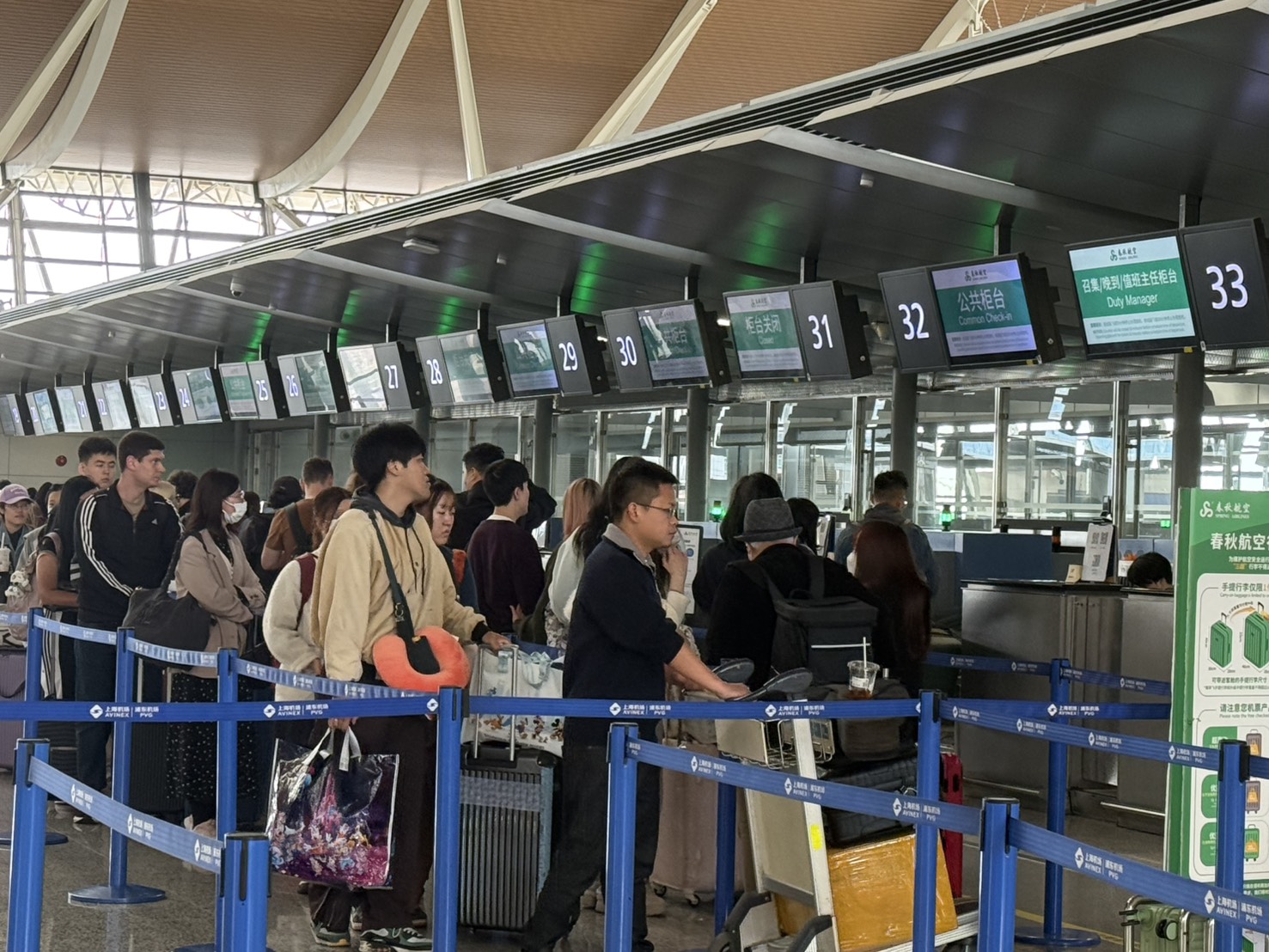 上海浦東機場第二航廈春秋航空報到櫃檯。記者謝守真/攝影