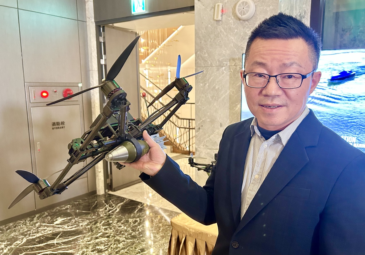 雷虎科技總經理蘇聖傑展示短程自殺型無人機(FPV)。聯合報記者宋健生/攝影