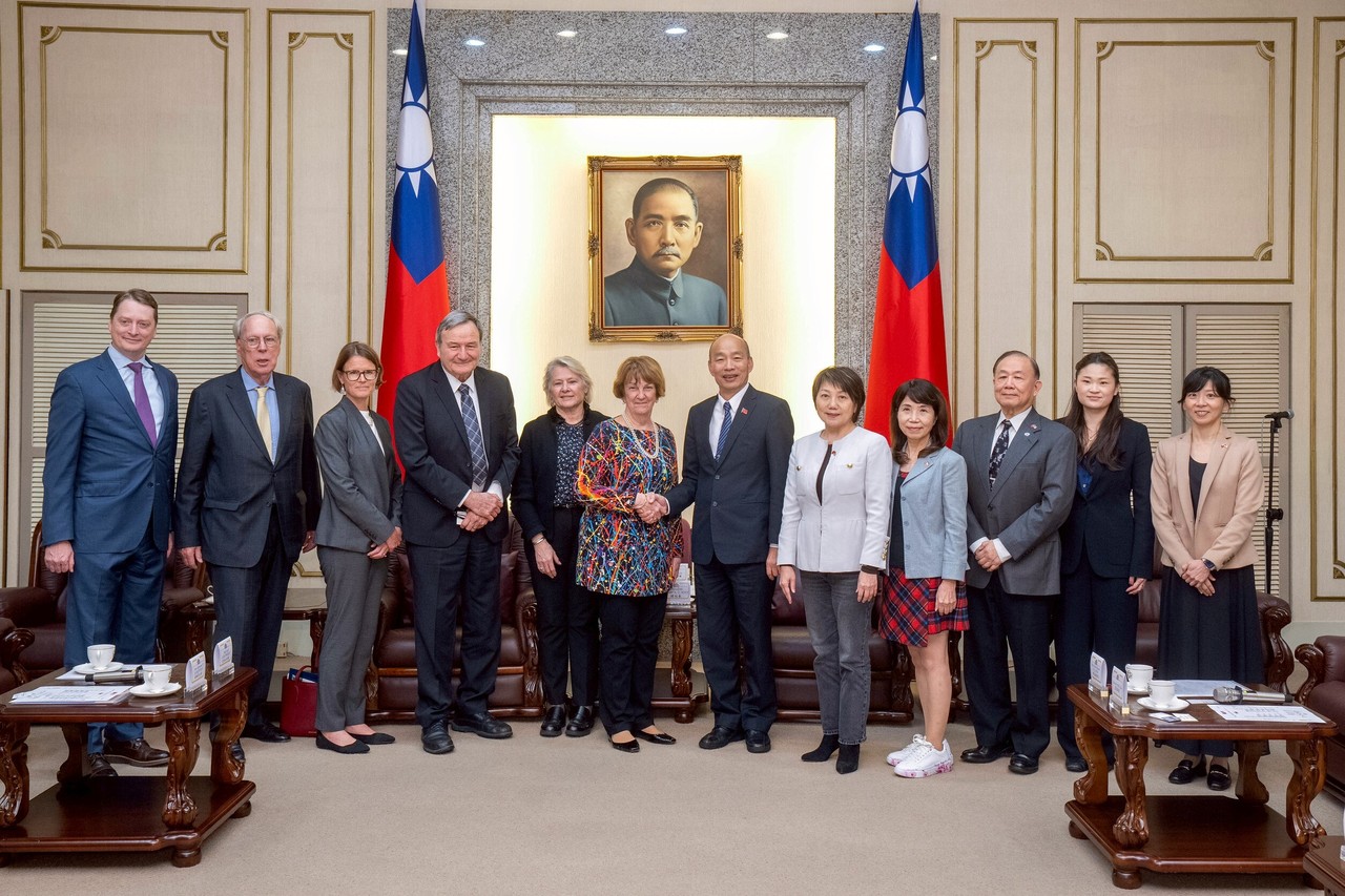 立法院長韓國瑜今天接見「美國外交政策全國委員會」一行,期待訪團藉此次訪問深入傾聽台灣人民的聲音,認識台灣成熟的自由民主制度,將觀察傳達至美國及國際社會。圖/中央社(立法院提供)