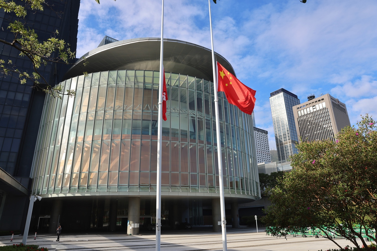 圖為香港立法會降半旗誌哀。中通社