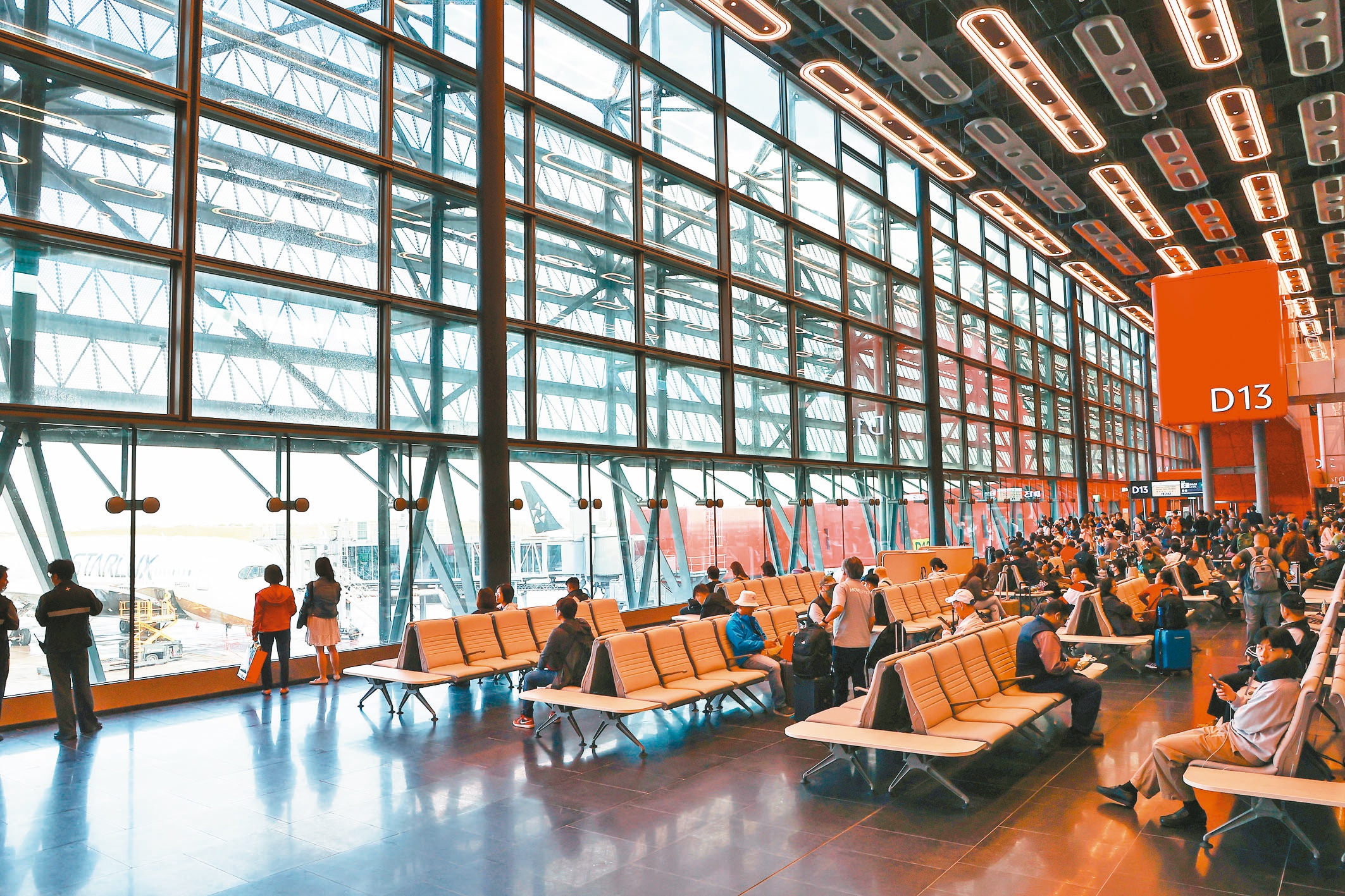 桃園機場第三航廈北登機廊廳1日試營運,挑高空間寬敞。聯合報系資料照片