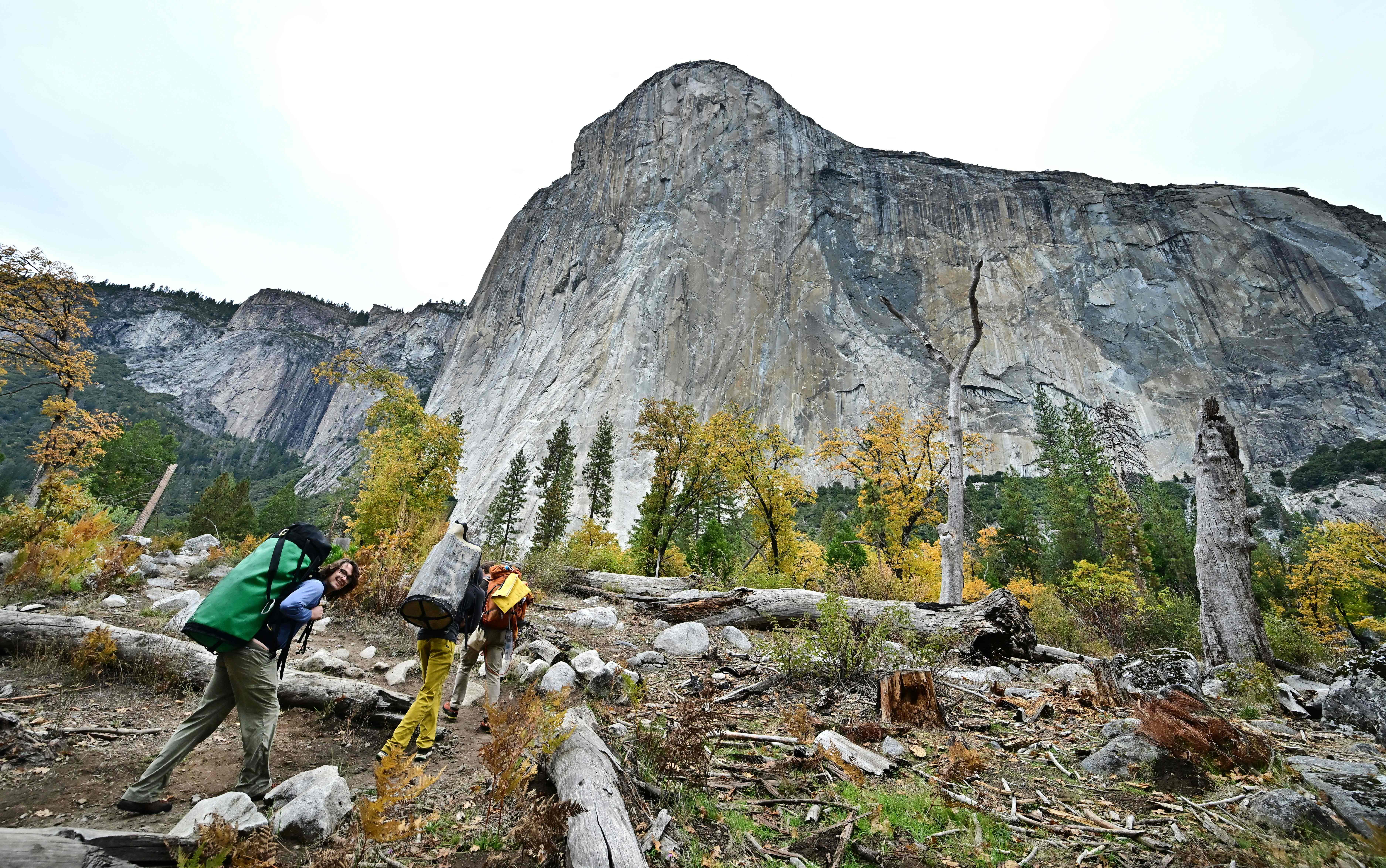 圖為加州優勝美地國家公園,觀光客準備攀登岩石。法新社