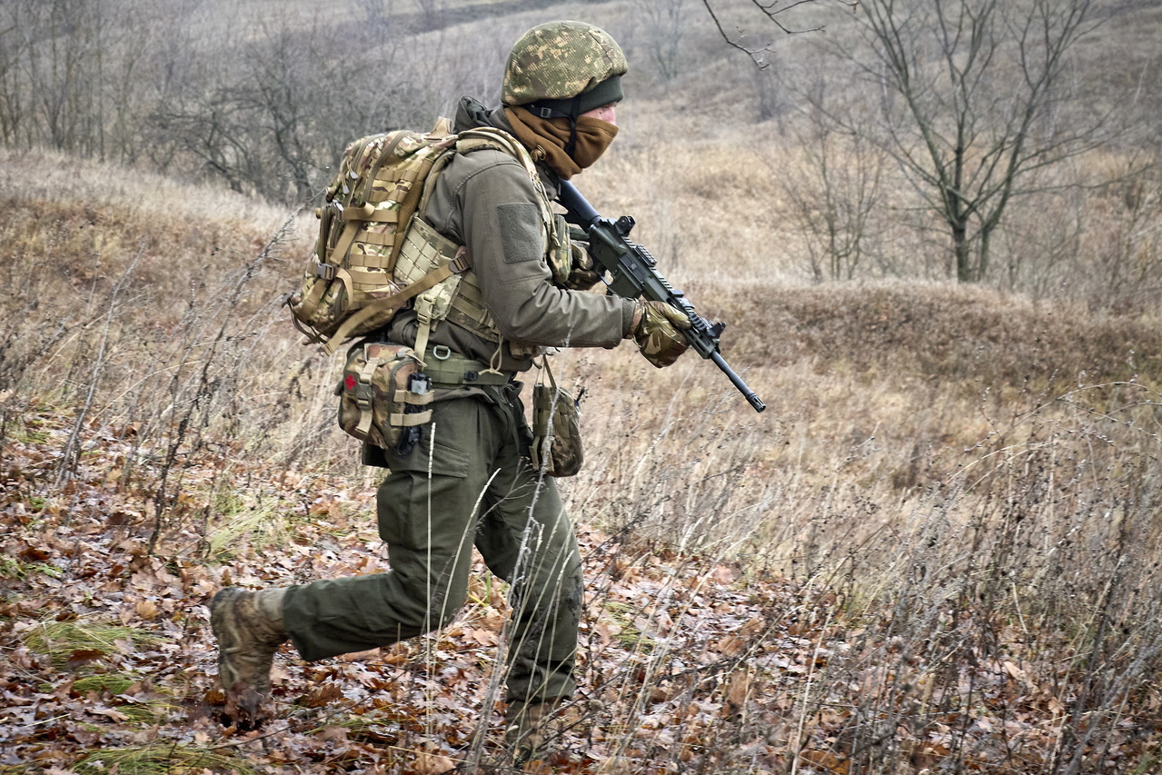 俄羅斯國防部表示,俄軍已控制烏克蘭北部哈爾科夫州的庫切羅夫卡村,還有東部頓內茨克州的瑞夫尼村。圖為12月3日,烏克蘭國民警衛隊第13「哈爾蒂亞」旅的一名士兵在烏克蘭東北部哈爾科夫地區的一個未公開地點參加戰術訓練。歐新社