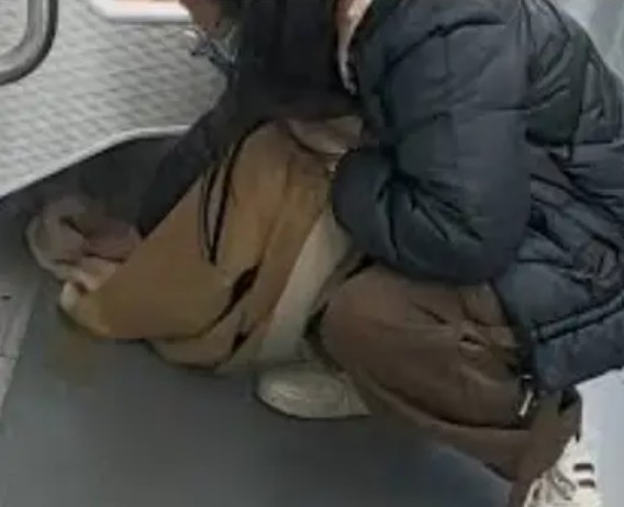 大陸蘇州崑山一名女子日前搭地鐵時,不小心將奶茶灑在車廂地板,她先拿出衛生紙清理,但發現紙量不足,竟直接脫下圍巾繼續擦拭。 圖擷自微博