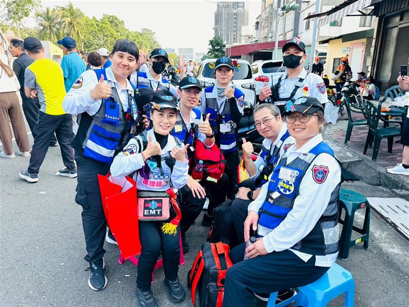 高雄市義消總隊第一救護大隊副大隊長李卓軒就說,去年救護義消大隊已在龍成宮媽祖遶境擔任志工,這次再度著召集50名志工為媽祖服務,在3天的遶境活動中總共出動50多人次,並租借漢神救護車提供完善的後送服務,期盼能降低遶境期間當地警消壓力;尤其6日晚間一名女信眾表明胃不舒服向救護站就,沒想到才剛評估完畢時忽然暈倒,當下在所有人的幫助下成功送抵高醫岡山醫院,經治療後已脫險。