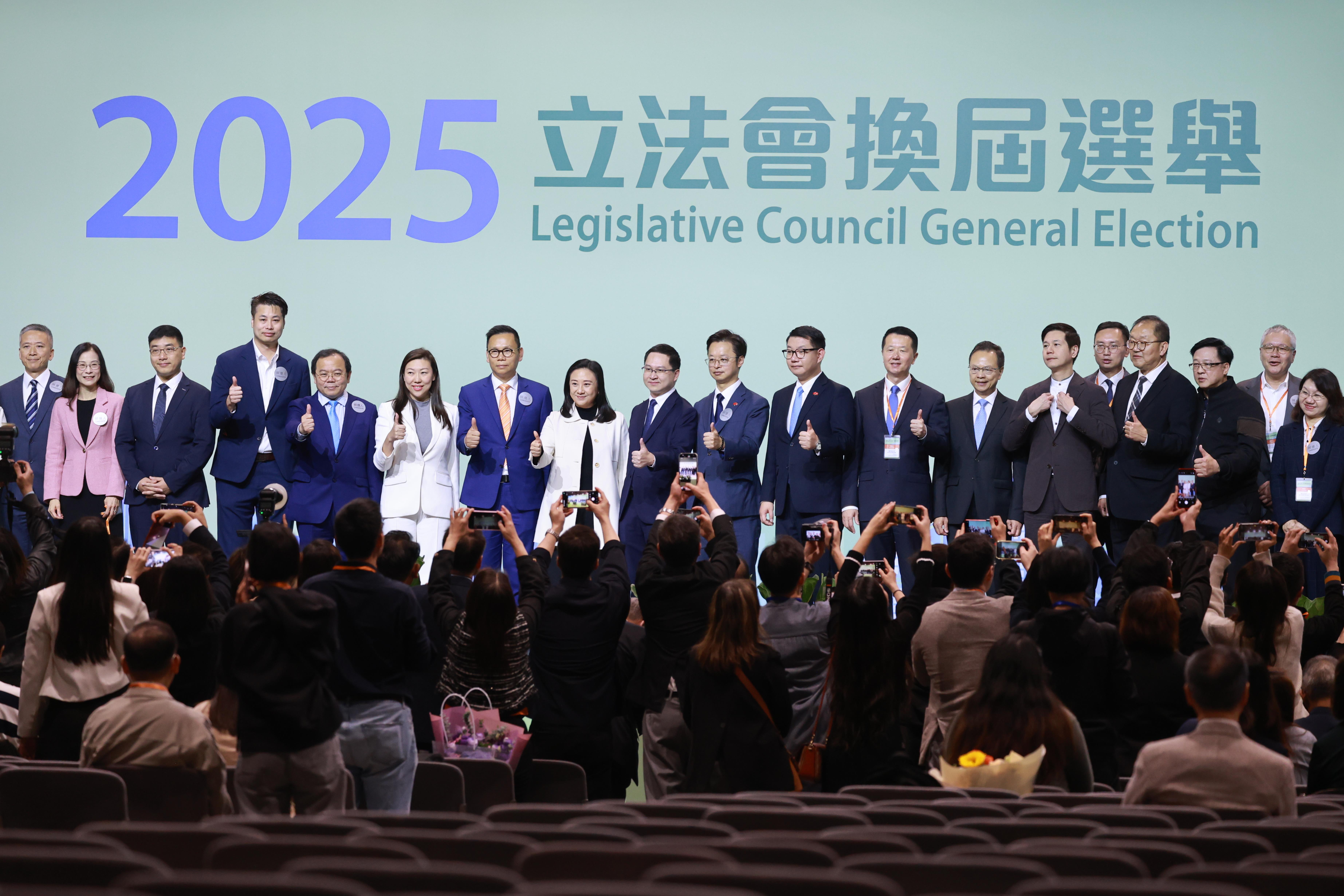香港特別行政區第八屆立法會選舉結果已全數揭曉,圖為8日凌晨部分候選人在台上等待結果。這次選舉所候選人均為通過審查的「愛國者」。(歐新社)