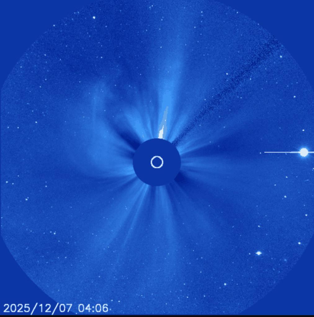 氣象署今下午2時30分發布太空天氣警示訊息,太空天氣作業辦公室表示,受到太陽表面活躍區於12月7日發生顯著的日冕物質拋射事件(CME),預期明(9日)清晨通過近地太空環境,造成行星際空間中的太陽風風速及密度明顯增加。