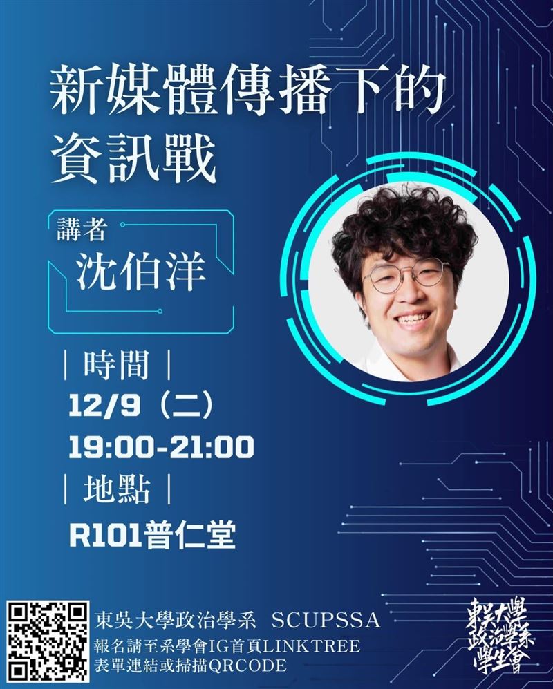 儘管遭到攻擊,不過沈伯洋明(9日)晚間也將赴東吳大學演說,主題為「新媒體傳播下的資訊戰」,然而對比前不久才到東吳大學卻拒絕「錄音、錄影」的黃國昌封閉式演說,沈伯洋不只開放直播,還說要讓學生們問到飽。有趣的是,黃國昌演說的報名表單上,特別載明「禁止任何形式抗議……違者視情況進行制止或驅離等措施」。這次沈伯洋的演說場次,報名表單上卻沒有禁止抗議的提醒。兩相對比之下,諷刺意味濃厚。