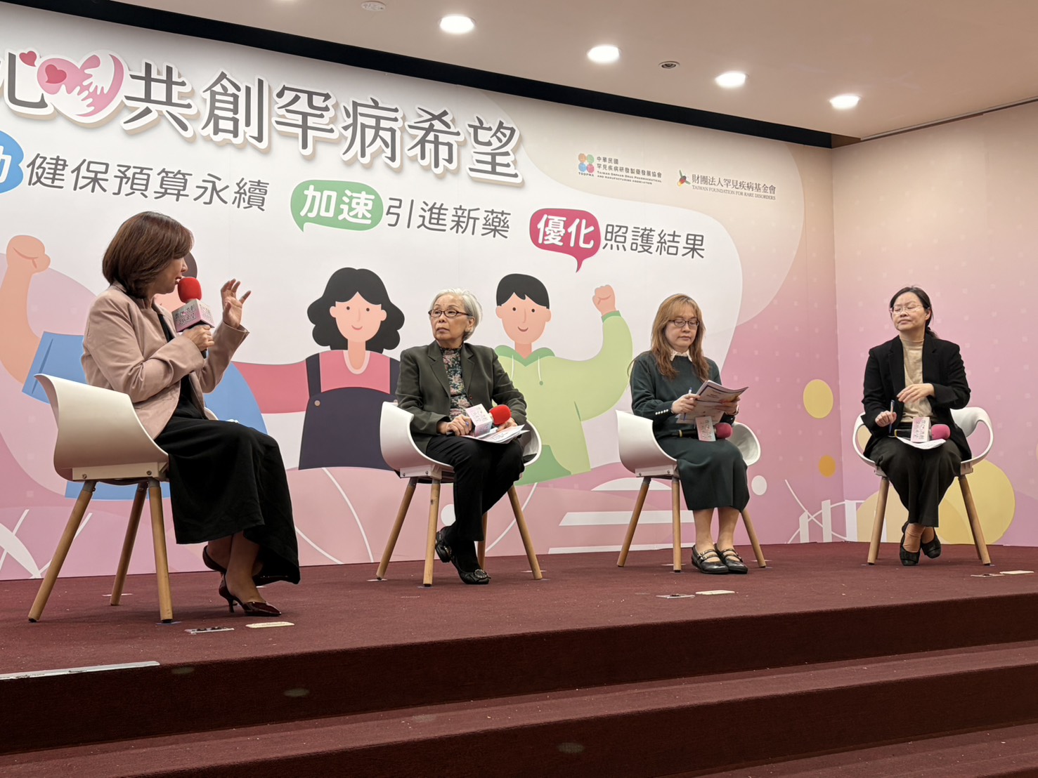 罕見疾病基金會創辦人陳莉茵(左二)今說,基因治療給付費用來自健保專款,不會影響一般藥品給付;輔大數據科學中心主任蒲若芳(右二)則提到,健保給付時,應將倫理放在心中,而非單純只討論「錢」。記者林琮恩/攝影