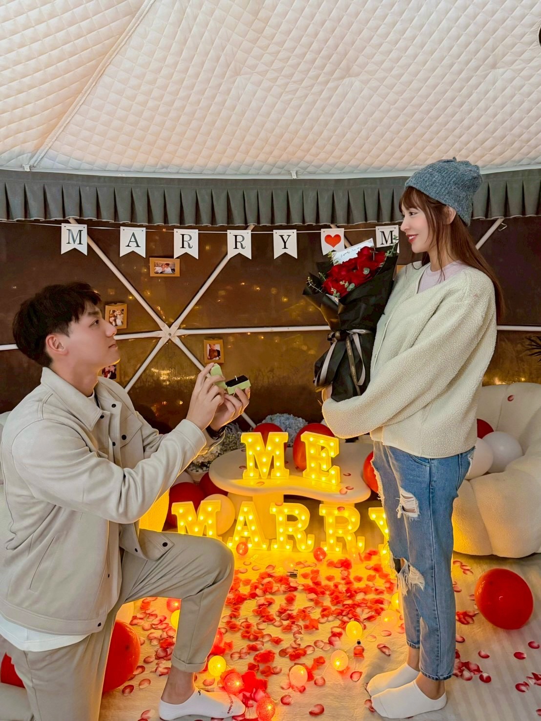 啾啾的網美好友黃文文發文分享陳晨威的求婚照片,並分享陳晨威求婚時向啾啾說,「你的背號是49剛好是我背號98的一半,我相信這是緣份,也或許是註定,感謝老天爺讓我有機會認識你、遇見你,你是我的一半,因為有你才變成我們,所以你願意嫁給我嗎?」