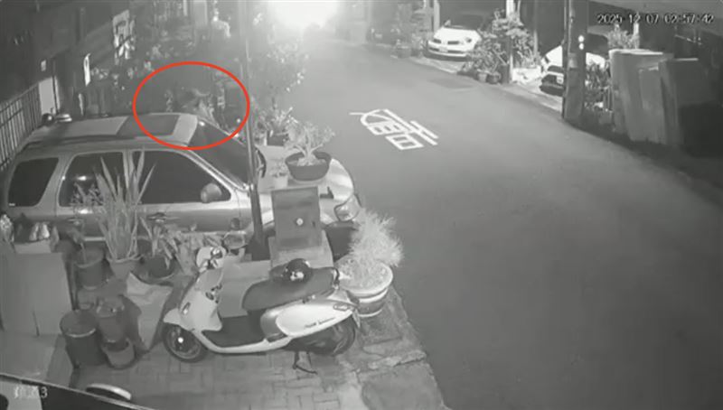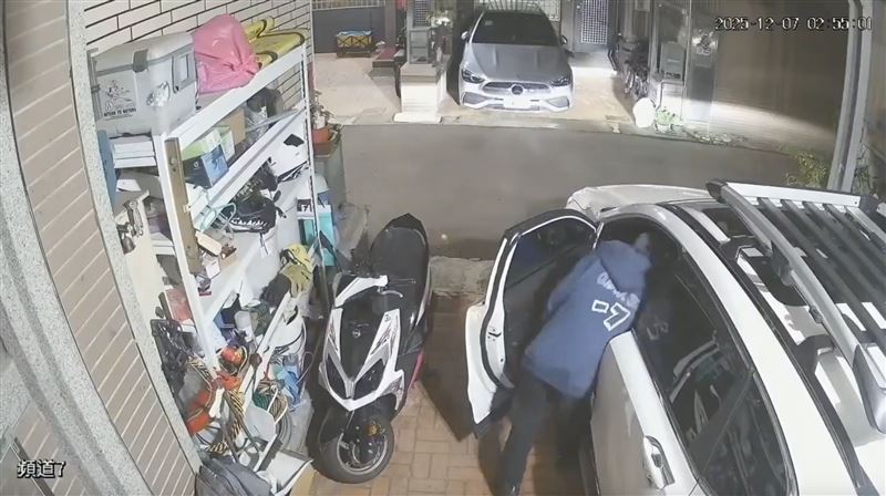 不過過程中,該名男子潛入某戶人家車庫後成功拉開車門,立即鑽入駕駛座搜括,未料該戶人家的騎樓感應燈亮起,屋內的狗狗不停吠叫,男子便將搜刮到的物品塞入口袋,關上車門後速速離去,犯案過程相當從容,推測應是慣犯。