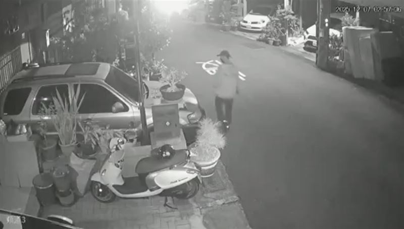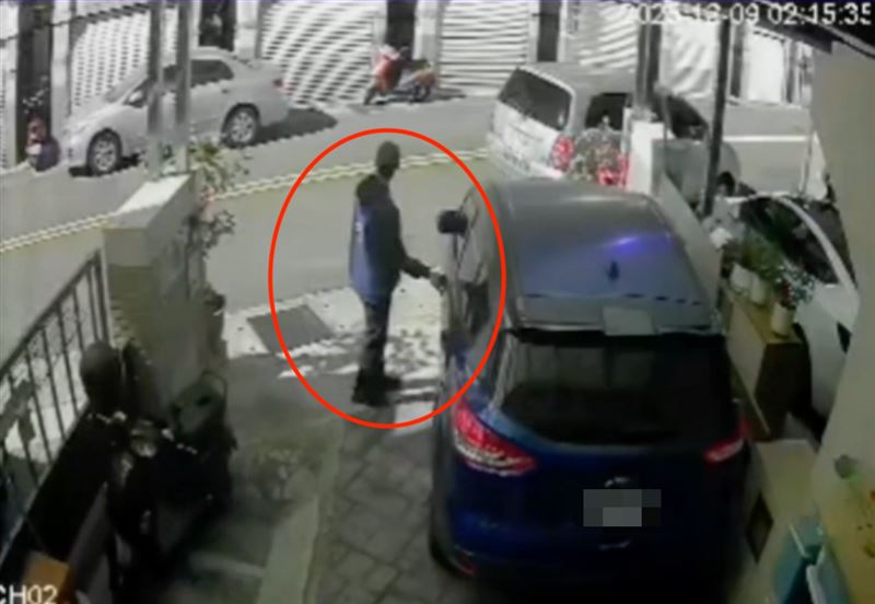 透過另段畫面可見,本月7日凌晨3時許,該名男子出現在太平區長億路某社區內,畫面總長4分多鐘,卻發現男子沿路潛入各個住戶家中,不放過任何一輛車,均動手拉車門試探是否有上鎖,確定沒有得手後便離去。