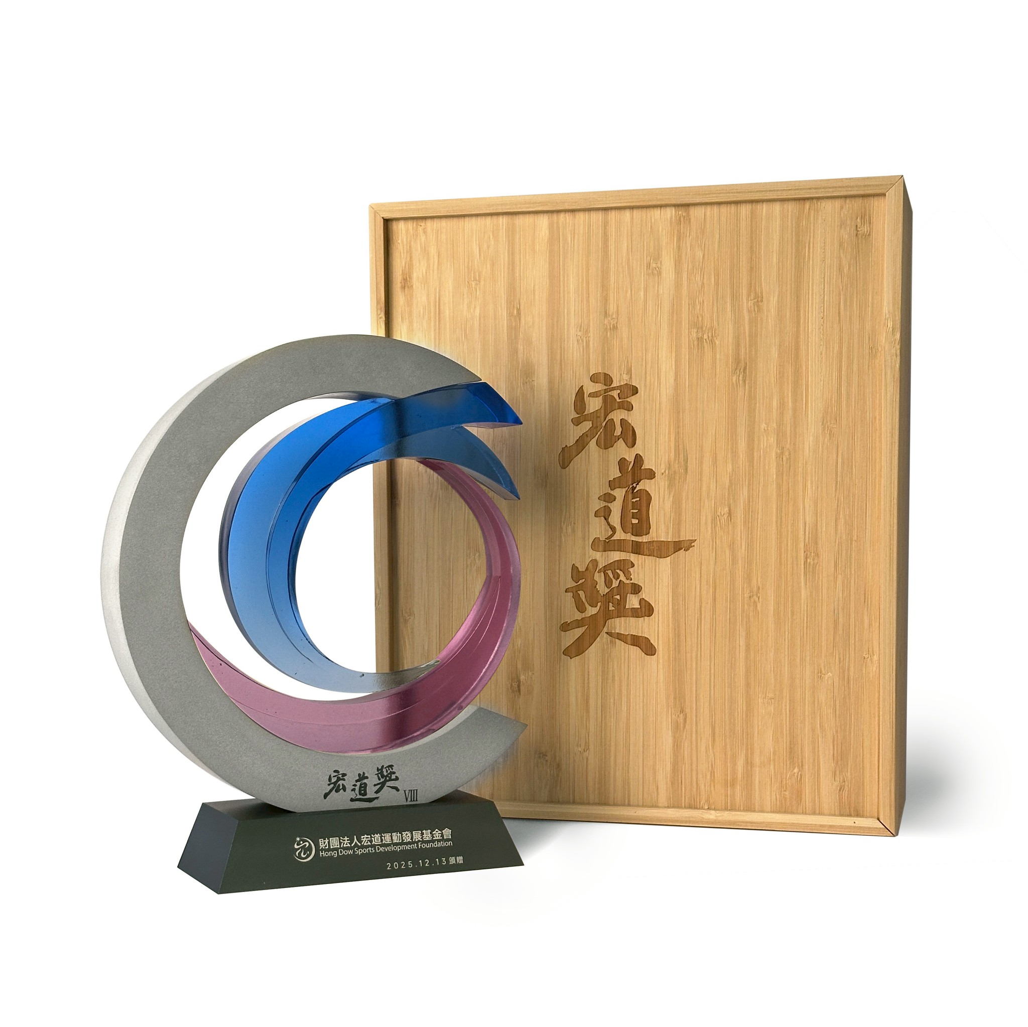 由宏道運動發展基金會設立的宏道獎今年邁入第8屆,並將於13日舉行頒獎典禮,為讓「成就」與「榮耀」更緊密相扣,宏道運動發展基金會今年不僅擴大獎項範圍,更首度打造全新獎座——〈湧環 The Rising Embrace〉,以「匯聚、包容、托舉」為核心意念,象徵每一位運動員的卓越成就,都源自無數支持力量的匯流與托舉。