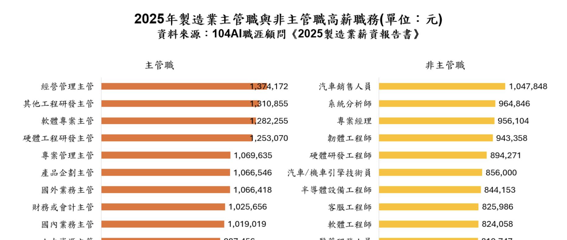 《2025製造業薪資報告書》資料。104人力銀行提供