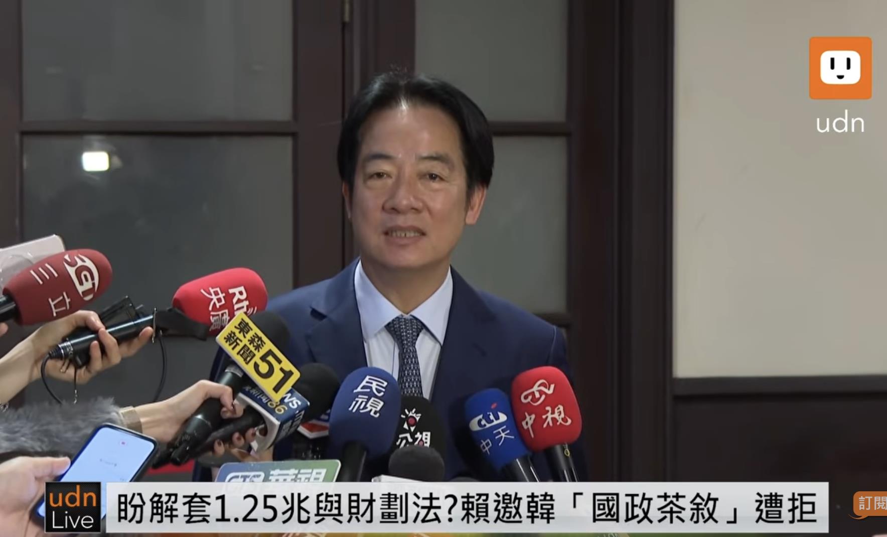 賴總統今早出席宏道獎頒獎典禮會前受訪表示,希望立法院長韓國瑜能參與國政茶敘。圖/擷取自udn直播