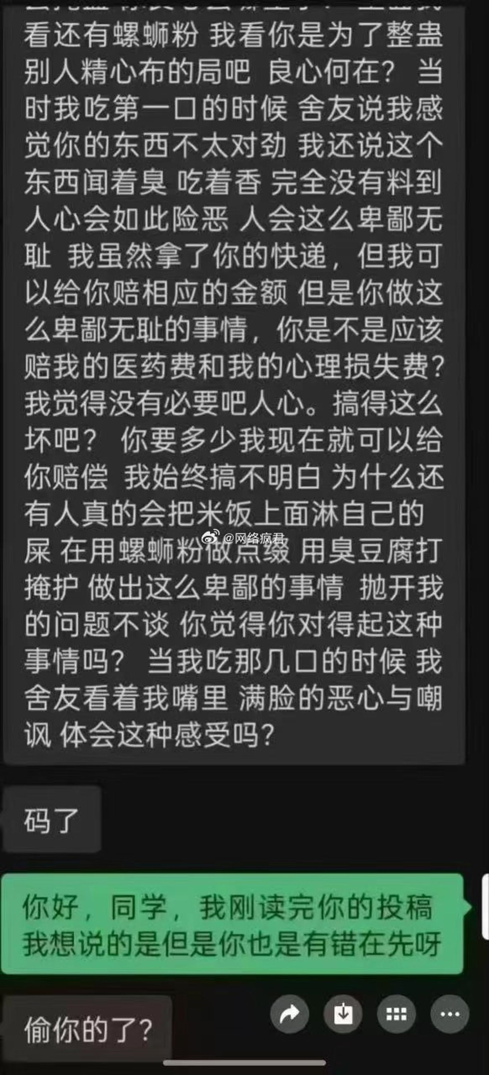 她隨後匿名向校園牆投稿,撰寫長文控訴對方「人心險惡」,並抱怨用餐時遭室友露出厭惡表情,讓她感到二度傷害。