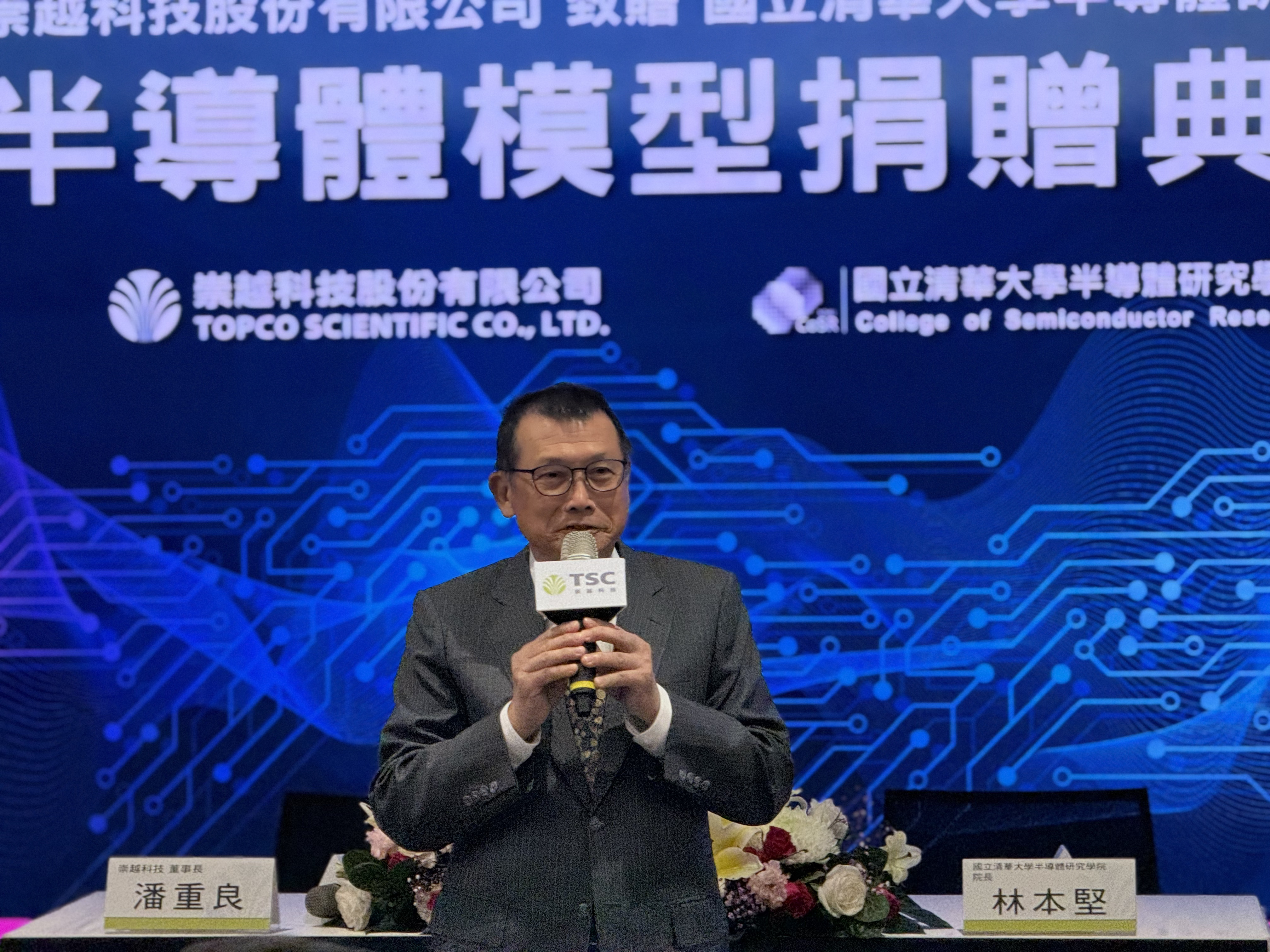 為強化台灣半導體人才培育與前瞻研究能量,崇越科技(5434)16日於台北內湖總部捐贈三座半導體模型予國立清華大學半導體研究學院,協助教學展示與研究推廣。同時,由崇越科技董事長潘重良與清華半導體研究學院院長─被譽為「浸潤式微影之父」的林本堅博士共同簽署合作意向書,宣布雙方將展開更深度的產學鏈結,攜手培育下一代高階半導體科技人才。