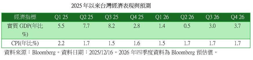 2025年以來台灣經濟表現與預測(資料來源:Bloomberg)