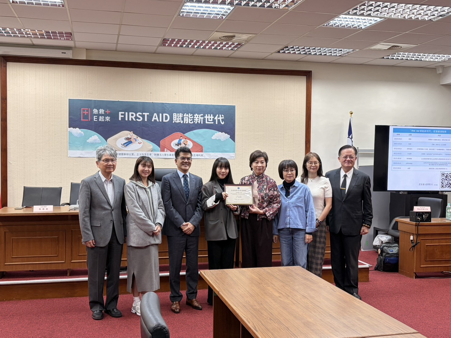 立委王正旭(左一)今天與內政部消防署長蕭煥章(右一)在厚生會急救賦能委員會舉辦的「全民急救E起來:First Aid賦能新世代記者會」同台。記者林琮恩/攝影