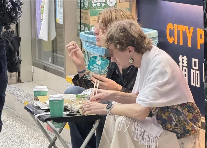 台灣新聞通訊社-老外蹲超商外「把傘架當餐桌」開吃! 網虧:洋相真的要靠洋人出