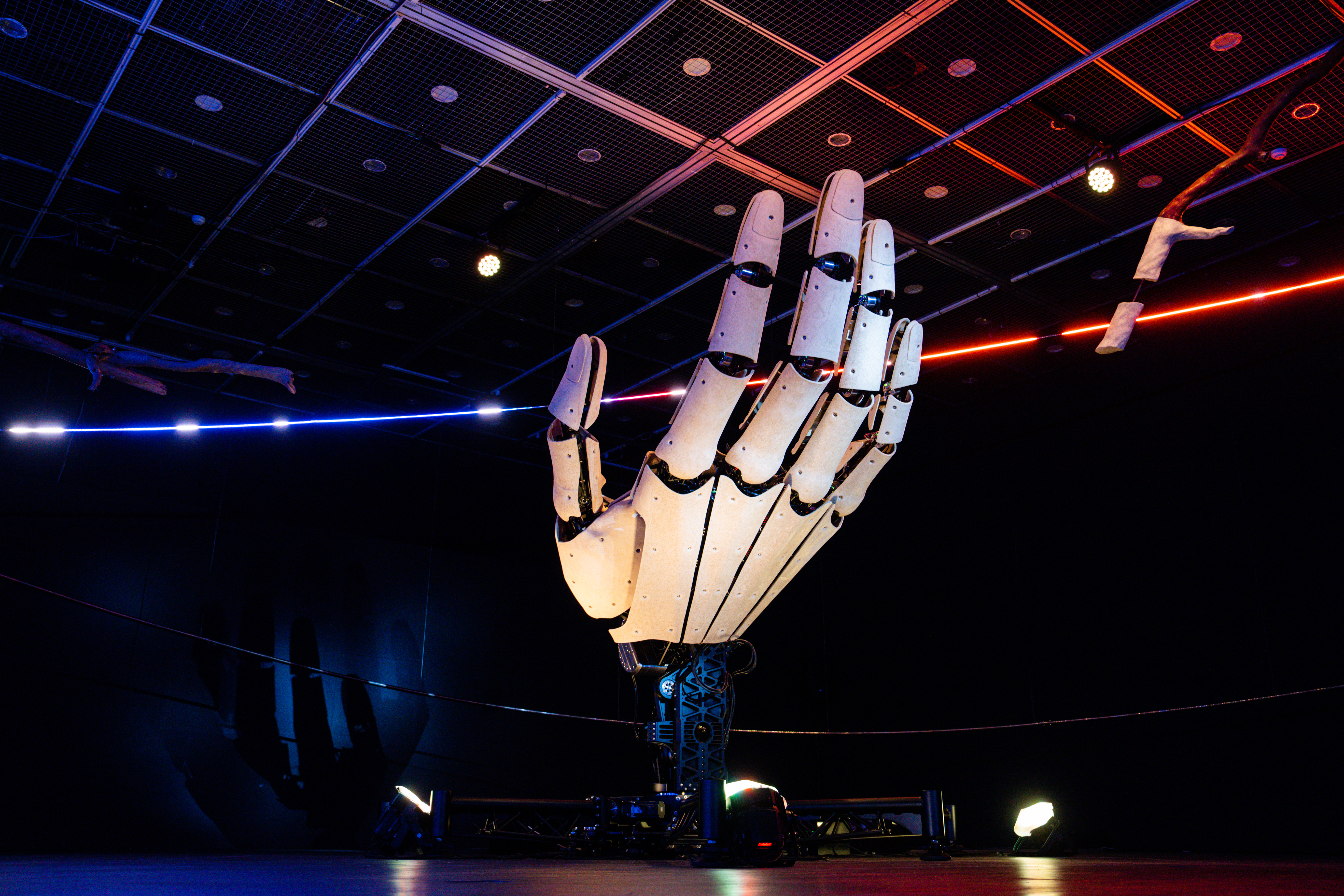 「真實其實是由我們的觀察所決定的!」豪華朗機工分享創作的技術哲學,指出所有科技都是人類心意的延伸,無論是光球的脈動或機械手的呼吸,其運作都與人的意念與感受密切連結。《最後一問》延續團隊多年以漂浮光球作為敘事核心的創作語彙,在本作中,光球既象徵人類智慧的集合,也是人類面向宇宙時最本質的提問。