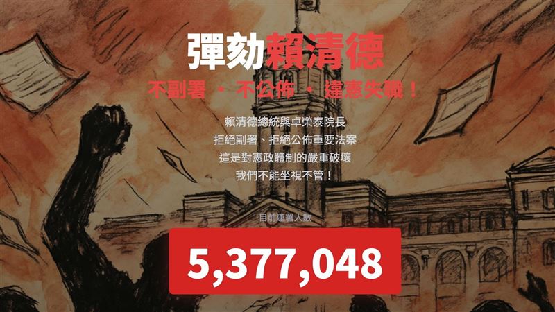 行政院長卓榮泰不副署再修版《財劃法》,引發藍白不滿,18日立法院司法及法制委員會通過臨時提案,移請監察院彈劾卓榮泰,19日正式提案彈劾總統賴清德,社群上也出現彈劾賴清德連署網站。不過就有工程師發現,網站後台疑似可以透過手動更改連署數字;還有人透過AI模擬UI(使用者介面),發現可自由切換「使用手動設定數字」。