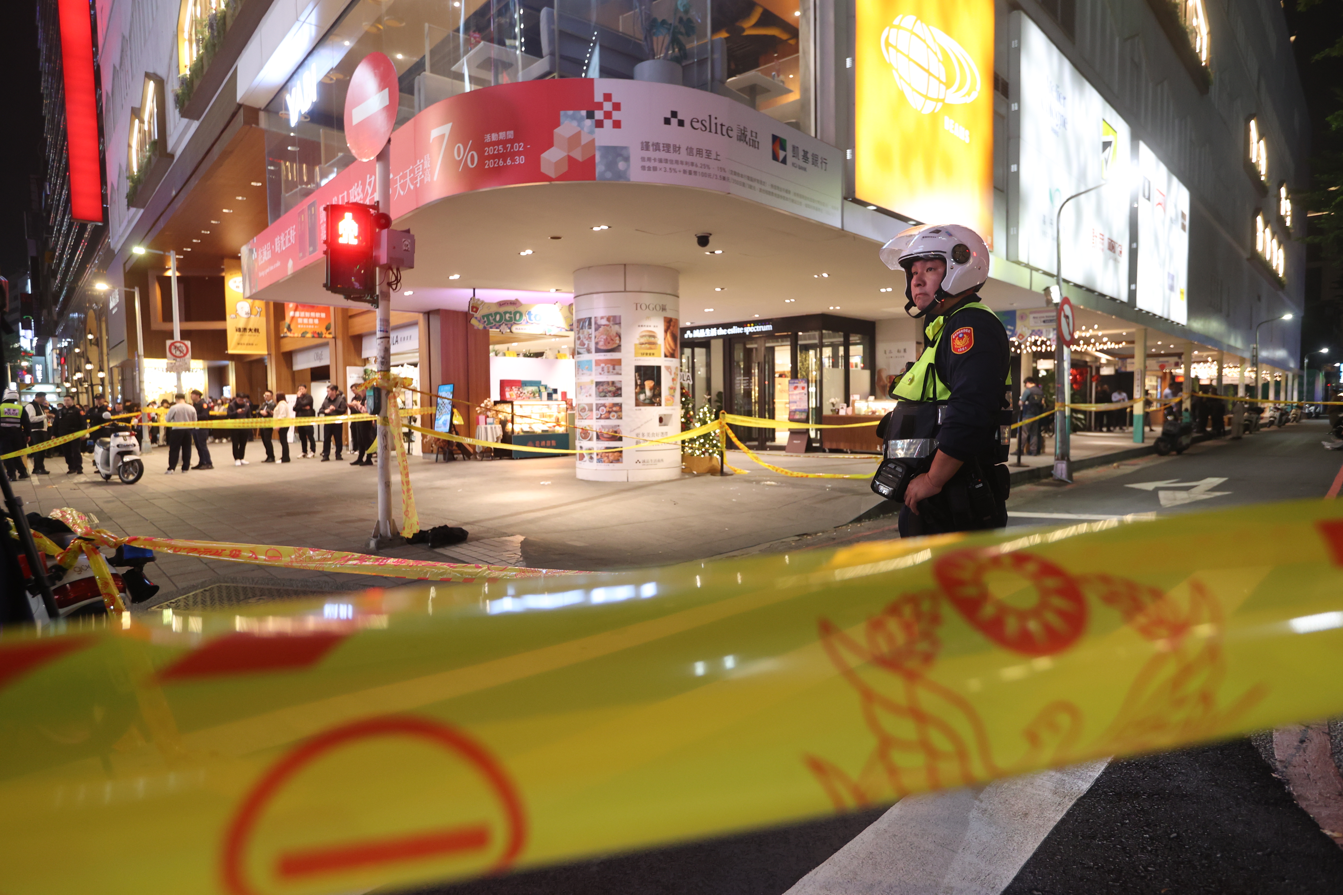 誠品生活南西店昨晚發生隨機殺人案,警方拉起封鎖線。記者葉信菉/攝影
