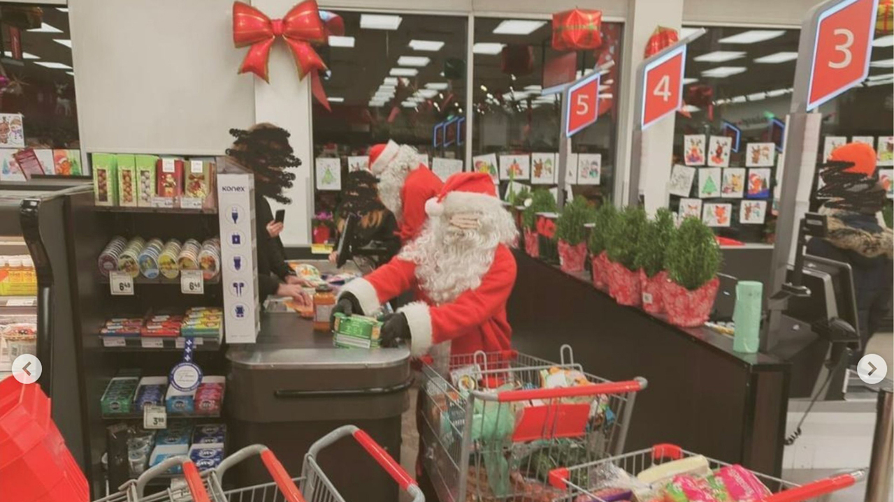 2025年12月20日,一群聖誕老人近日率領一眾精靈闖入加拿大滿地可(Montreal)一間超市,將價值數千加元的食品裝滿購物袋,然後逃之夭夭。 圖擷自IG@soulevementsdufleuve