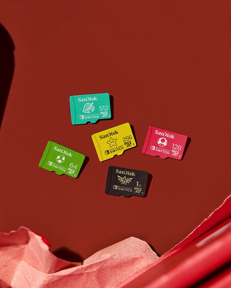 人氣爆棚的 SANDISK® microSD Express 記憶卡採用 PCIe® Gen 3 NVMe™ 介面,讀取速度高達 880MB/s。與 Nintendo Switch 2 完美相容,高速載入超有感!SANDISK® Nintendo® Switch 專用記憶卡獲官方授權,與 Nintendo® Switch、Switch OLED、Switch Lite 相容,提供官方認證的最佳穩定度。SANDISK® GamePlay microSD 記憶卡支援手機與多款掌機,容量最高 1TB,無論大型手遊或 4K 影片都能順暢讀寫。